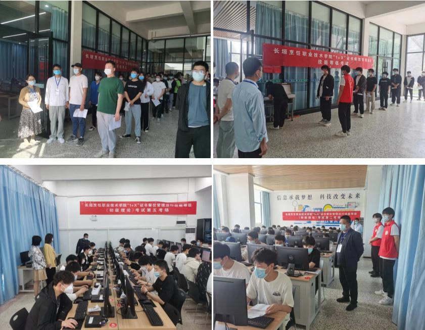 考试分为理论和实操两个部分,理论考试在学院行知楼机房进行,实操在实训室进行,考试公正公开,全程录音录像,规范有序。